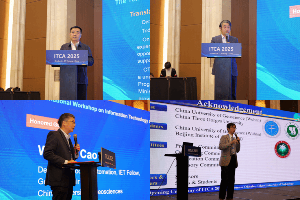 2025年10月25日上午,ITCA2025在宜昌举行开幕式。三峡大学副校长黄悦华教授、北京理工大学孙健教授、中国地质大学(武汉)曹卫华教授和日本东京工科大学OHKUBO Tomomasa教授分别致辞,对各位代表表示热烈欢迎,并祝贺会议开幕。开幕式由程序委员会主席、中国地质大学(武汉)吴俊东教授主持。