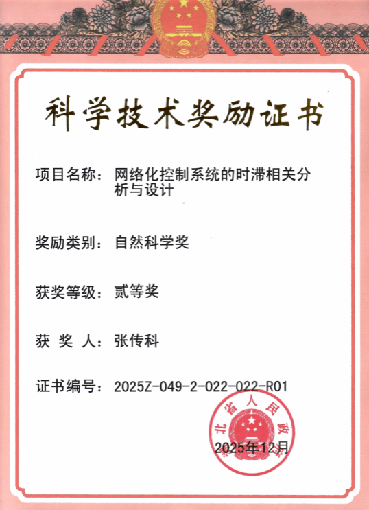 1月4日上午,湖北省科技创新大会召开,公布了《湖北省人民政府关于2025年度湖北省科学技术奖励的决定》。张传科教授团队“网络化控制系统的时滞相关分析与设计”项目荣获湖北省自然科学奖二等奖。向张传科教授团队表示祝贺!